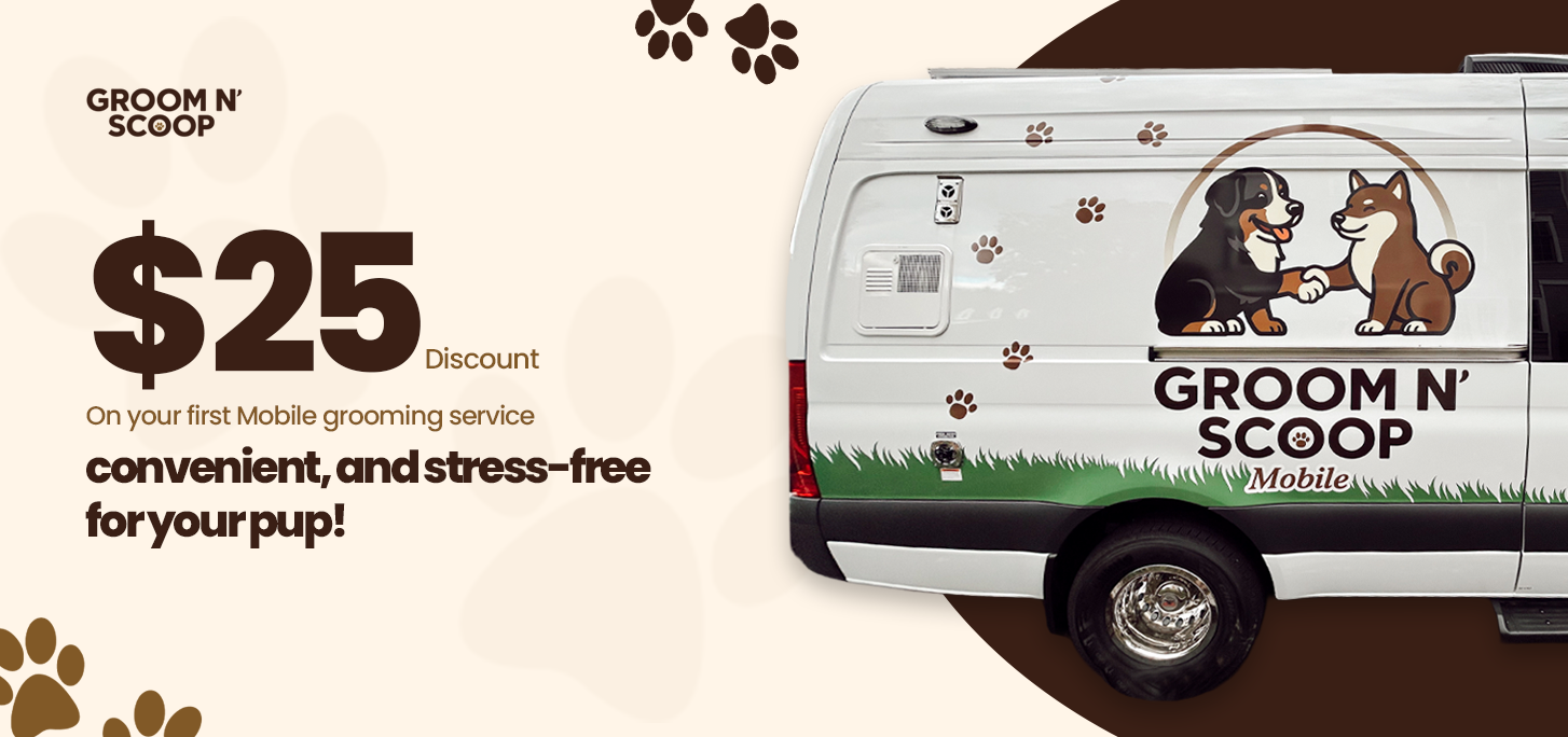At Groom N Scoop, we bring gentle, stress-free grooming and reliable pet-waste removal right to your doorstep. Our calm, cozy grooming environment and thoughtful, personalized service are all designed with one goal in mind—making life easier for you and happier for your furry friend.
